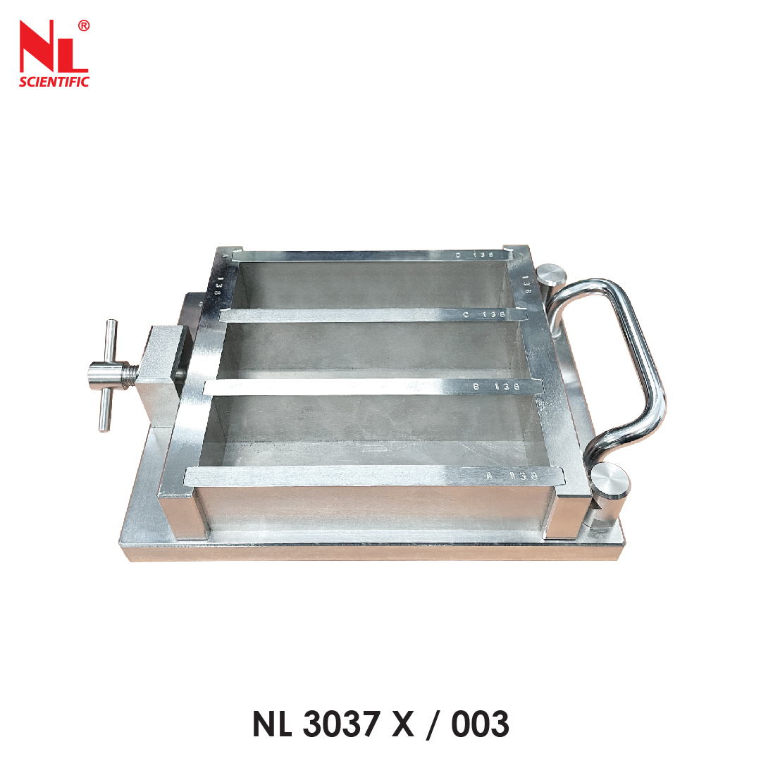 The apparatus is used to compact cement mortar prisms in three gang mould. Made with galvanized chrome steel with quick locking device for prism mould. Easily removable to check weight. Drop height 15 mm with 60 drops per minute cycle. Control panel with main switch. Start / Stop button with digital selector, to select number of cycles which the machine automatically stop. Built in feed hopper and quick clamp.