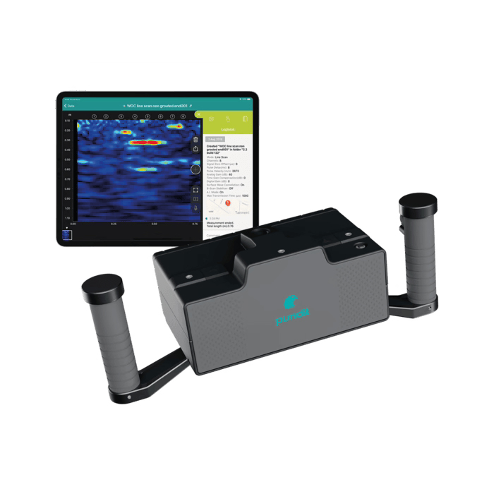 Location of subsurface defects of concrete / Measurement of thickness of concrete elements / Determination of concrete pulse velocity for homogeneity and strength estimation