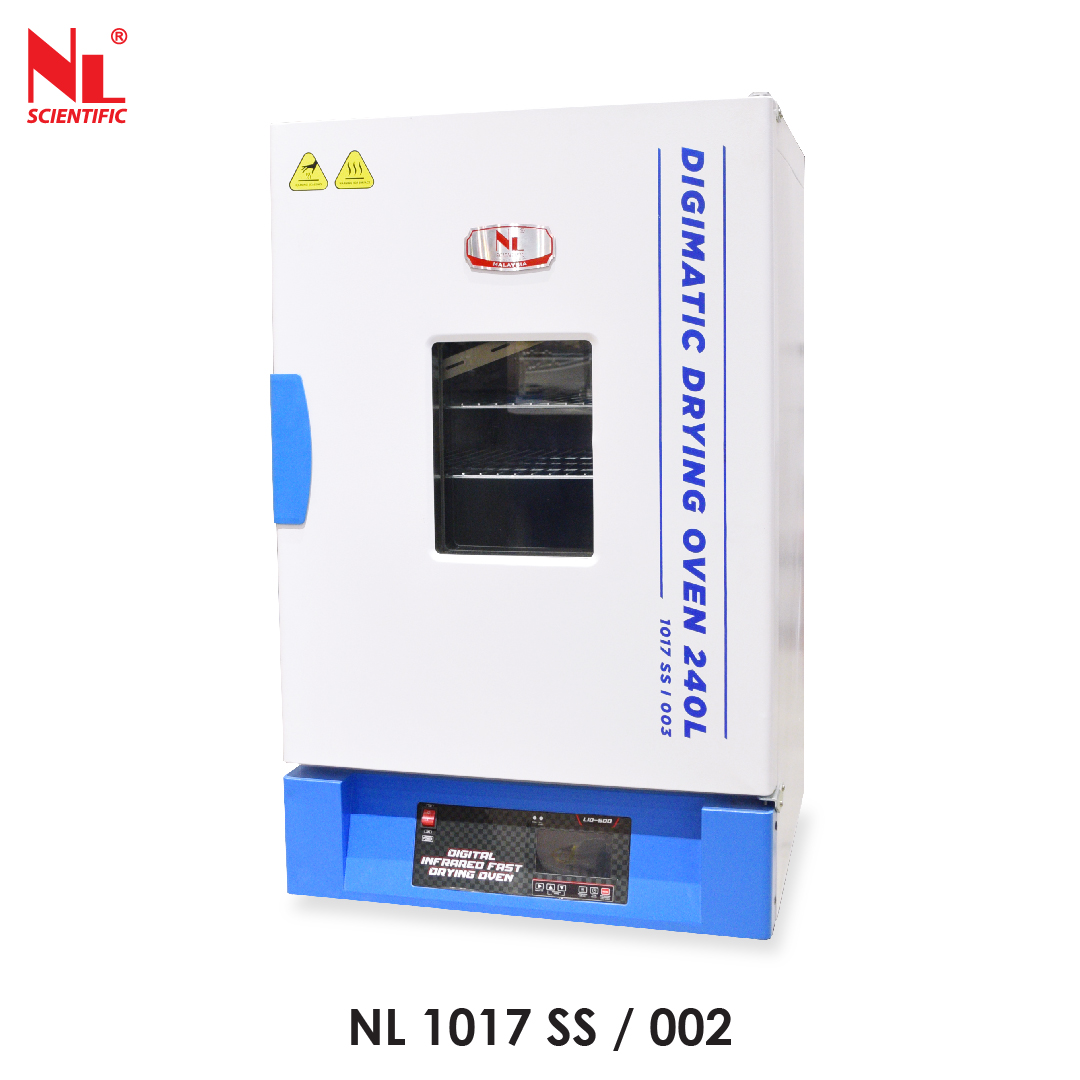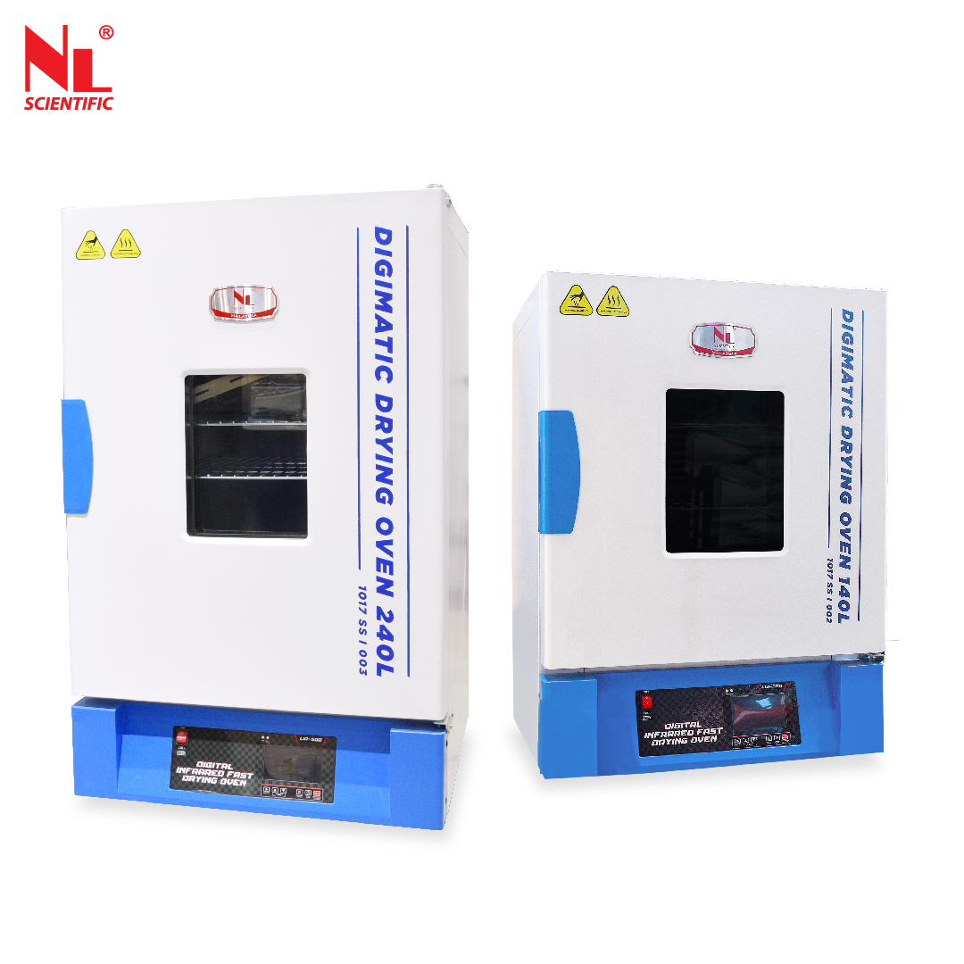 The design of a laboratory drying oven includes a chamber where samples are placed, heating elements to generate heat, and a ventilation system to remove moisture-laden air. NL Scientific Laboratory Drying Oven comes with digital controls for setting and monitoring temperature, timers for precise operation, and safety features to prevent overheating or accidents.