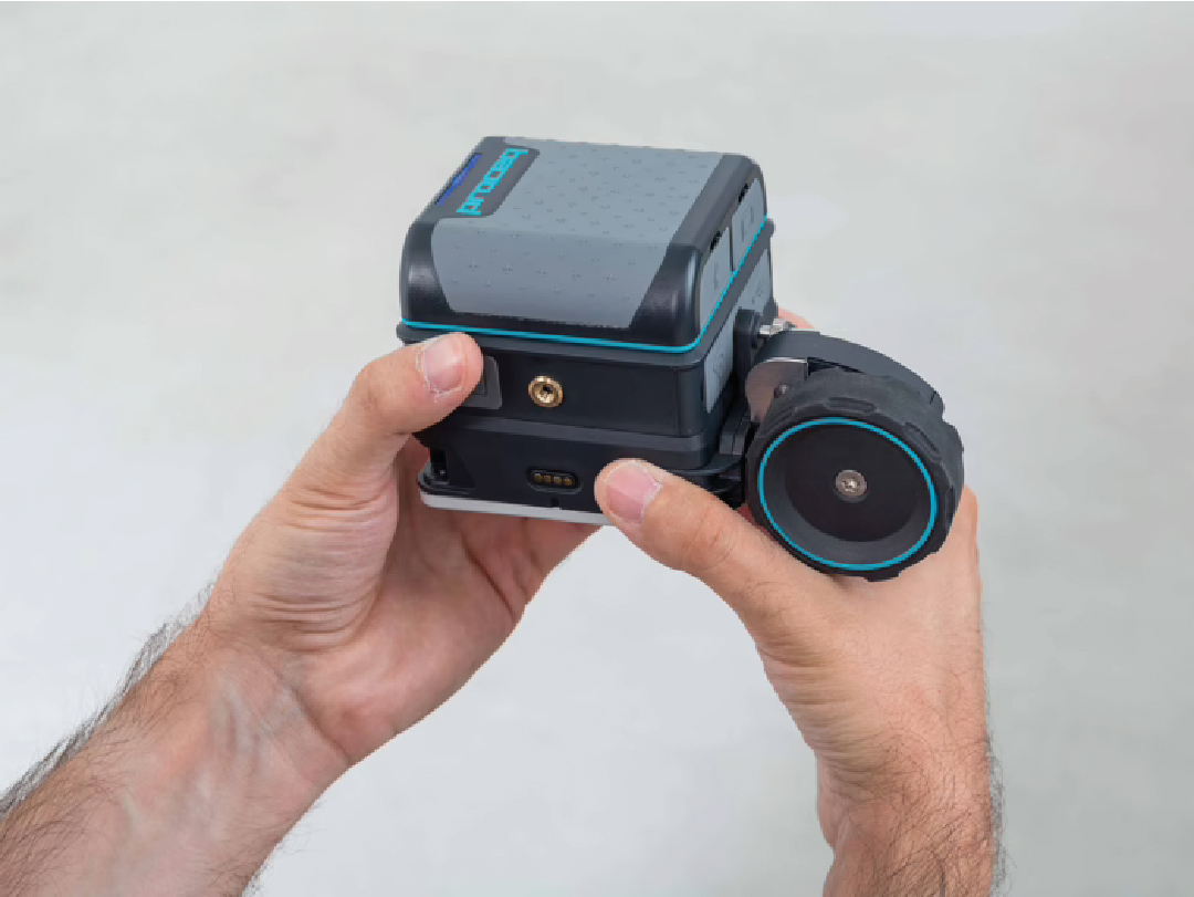 Wireless wheel, reconfigurable at any time without tools. Cross-polarization (trailing and side-car configurations) USB-C tethering to battery pack/power bank |