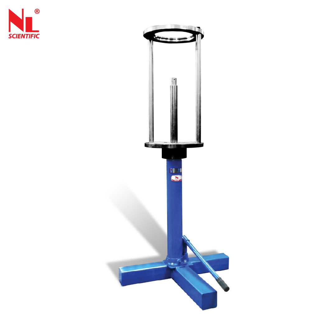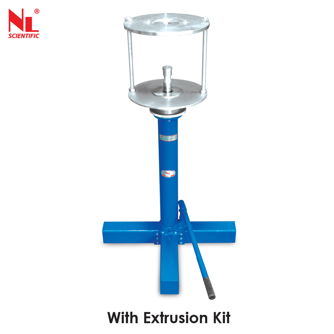 A free seating unit with hand pump and hydraulic jack. This Vertical Universal Extruder has maximum extruding force of 3 tons and a total ram stroke of 500 mm. The extruder head can attach all range of adaptors to enable specimens to be extruded from 38 to 152 mm diameter specimens.