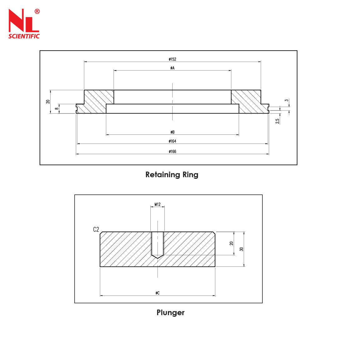 The hand operated unit extrudes samples from Ø 38 to Ø 150 mm with maximum stroke of 650 mm.